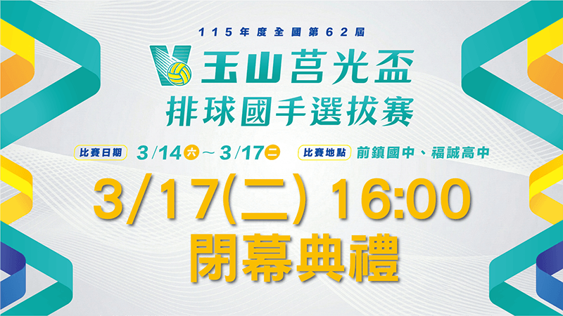 玉山銀行用實際行動推動國內青年與青少年排球賽事發展,邀請大家共同關注「玉山莒光盃全國排球賽」與台灣青(少)年選手們,一起為台灣排球加油與喝采!